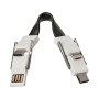 Кабель 4 в 1 позволяет заряжать любые устройства. Он оснащен разъемами USB Type A, Type-C и наконечником 2 в 1, совместимым как с устройствами iOS, так и с устройствами Android. Может использоваться как для зарядки, так и для передачи данных.