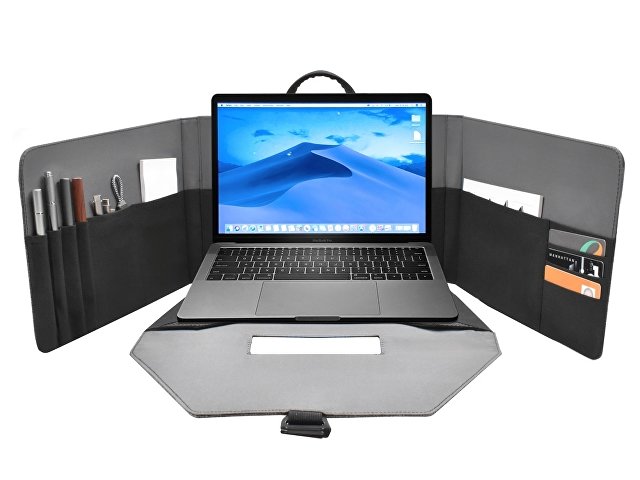 Легкая и функциональная сумка для ноутбука15'' или планшета, которая быстро трансформируется в комфортабельное переносное рабочее место. Степень наклона ноутбука при работе регулируется липучкой. Внутри предусмотрен органайзер для канцтоваров, смартфона, бумажника и карточек. Застежка надежно фиксирует сумку на закрытом виде. Вы сможете работать в любом месте и любой обстановке.