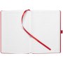 Ежедневник с твердой обложкой без поролона, выполнен из материала Soft Touch Ultra, красный РР, дополнен резинкой шириной 1 см, петлей-резинкой для ручки, капталом и ляссе красного цвета.