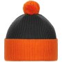 Двуслойная шапка фактурной вязки с контрастным подворотом и помпоном.