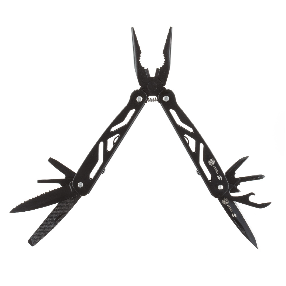 Мультитул Stinger, сталь/алюминий (чёрный), 12 инструментов, нейлоновый чехол, коробка картон