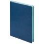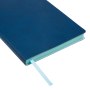Дизайн ежедневника Latte NEW выполнен в интересном цветовом решении. Минималистичный, но завершенный внешний вид достигается за счет удачного сочетания оттенков синего. Обложка выполнена из мягкого, слегка прорезиненного материала, имитирующего искусственную кожу. Гладкая и приятная на ощупь, она имеет едва заметный блеск. Мелкозернистое покрытие имеет глубокий, однородный и слегка припудренный темно-синий цвет. Форзац и нахзац матовые, голубые, гармонично дополняют основной цвет аксессуара. Страницы теплые, кремовые, со скругленными уголками. Выполнены из нежного шелковистого офсета.