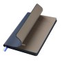 Страницы со скругленными уголками приятного глазу теплого светло-кремового цвета. Выполнены из гладкого шелковистого офсета. Ежедневник дополнен двойным атласным ляссе из лент серого и синего цветов, имеющих глянцевый отлив.