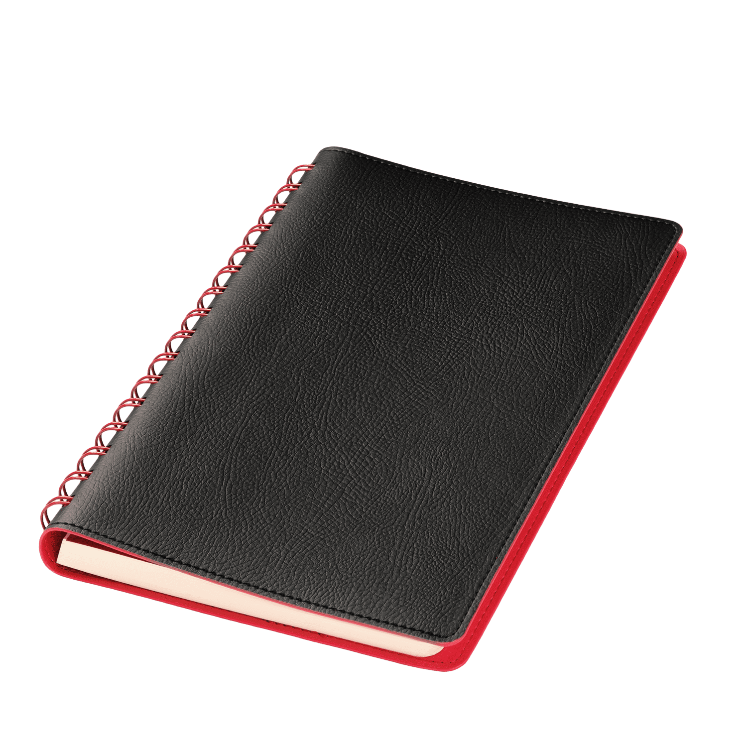 Цвет – черный, насыщенный, динамичный, однородный. Внутренний материал обложки – Latte – бархатистый, мелкозернистый, ярко-красного цвета.