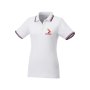 Женская футболка поло Fairfield с коротким рукавом с проклейкой. Воротник гладкой вязкой в рубчик. Манжеты гладкой вязкой в рубчик. Контрастные окантовки. Планка с тремя пуговицами (мужская модель).Гравированные пуговицы в цвет изделия. Комфортный ярлык-трансфер на изделии. Трикотажное пике, 100% хлопок. 180 г/м?.