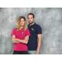 Женское поло Helios с коротким рукавом. Женская модель с разрезами по бокам. Отрезной-отрывной ярлык для комфорта. Воротник гладкой вязкой в рубчик. Планка с тремя пуговицами. Двойная строчка на воротнике и внизу изделия. Пуговицы в цвет изделия. Полоска на горловине в контрастном цвете. Трикотаж Piqu?, 100 % хлопок. 180 г/м?.
