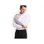 Рубашка мужская с длинным рукавом на семи пуговицах. Накладной карман на груди слева, закругленный низ изделия. Уголки воротника продублированы пуговицами.