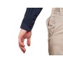 Рубашка мужская с длинным рукавом на семи пуговицах. Накладной карман на груди слева, закругленный низ изделия. Уголки воротника продублированы пуговицами.