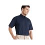 Рубашка мужская с коротким рукавом на семи пуговицах. Накладной карман на груди слева, закругленный низ изделия. Уголки воротника продублированы пуговицами.