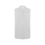 Жилетка без рукавов. Застежка спереди со скрытыми кнопками-застежками. Воротник-стойка, боковые вставки и складки в области груди. Два передних накладных кармана.