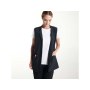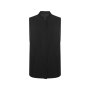 Жилетка без рукавов. Застежка спереди со скрытыми кнопками-застежками. Воротник-стойка, боковые вставки и складки в области груди. Два передних накладных кармана.