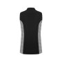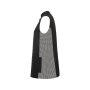Жилетка без рукавов. Застежка спереди со скрытыми кнопками-застежками. Воротник-стойка, боковые вставки и складки в области груди. Два передних накладных кармана.