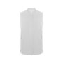 Жилетка без рукавов. Застежка спереди со скрытыми кнопками-застежками. Воротник-стойка, боковые вставки и складки в области груди. Два передних накладных кармана.