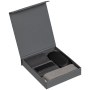 Коробка выполнена из переплетного картона, кашированного дизайнерской софт-тач бумагой Senzo.