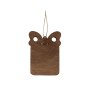 Игрушка выполнена в современной технике с использованием классических новогодних цветов. Она станет замечательным украшением елки и прекрасным дополнением к корпоративному подарку. В украшении используется дерево, акрил и смола.