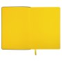 Ежедневник с гибкой обложкой, форзац и нахзац желтого цвета, ляссе желтого цвета, обрез тонированный желтого цвета.