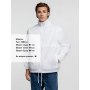 Застежка-молния, манжеты на резинке, вентиляционные отверстия, 2 наружных кармана на молниях. Капюшон складывается в воротник, по низу изделия шнурок. Ветровка может быть сложена в карман и закреплена эластичным ремнем на талии.