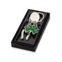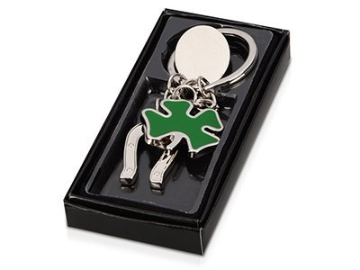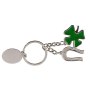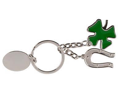 Брелок с шильдом «На удачу» с подковой и четырехлистным клевером.