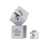 Сильно намагниченные металлические элементы складываются в 3D паззл. Кубик размещается на металлической базе, благодаря чему вы имеете и настольный аксессуар, и пресс-папье.