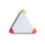 Трёхцветный пластиковый маркер-выделитель, треугольный корпус. Цвета маркера: желтый, розовый и оранжевый.