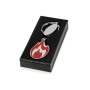 Брелок с шильдом «Пламя» - это стильное металлическое изделие, которое станет отличным сувениром для коллег и партнеров. Брелок отлично подходит под нанесение логотипа, благодаря чему станет настоящим рекламным носителем, напоминающим о вашей компании.