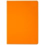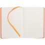 Ежедневник с твердой обложкой и тонированным обрезом, выполнен из материала Soft Touch, оранжевый ОО, дополнен ляссе в цвет обложки.