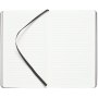 Блокнот в твердой обложки, выполнен из материала Soft Touch, черный АА, дополнен резинкой и ляссе в цвет обложки.
