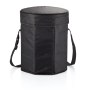 Сумка-холодильник и табурет 2 в 1. Складная сумка-холодильник чёрного цвета с полиэтиленовым покрытием, разложенная сумка с закрытой крышкой превращается в табурет диаметром 30 см. Удобно использовать и в качестве холодильника, и в качестве стула.