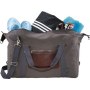 Эксклюзивная сумка из холщового хлопка с большим основным отделением и уникальной отделкой Field & Co.™. Виниловая отделка, передний карман на молнии и прочные ручки. Ручки могут защелкиваться, когда сумка не полная, или разъединяться, когда сумка полная. Планка для крепления на чемодан.