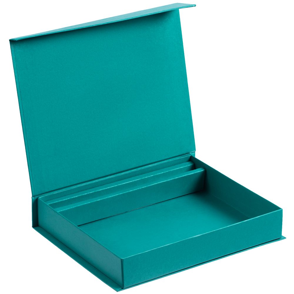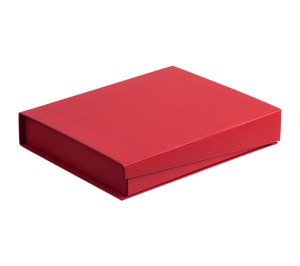 Коробка с клапаном на магните, выполнена из переплетного картона, кашированного бумагой Majestic (серебро).