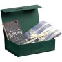 Коробка выполнена из переплетного картона, кашированного дизайнерской бумагой Curious Metallics.