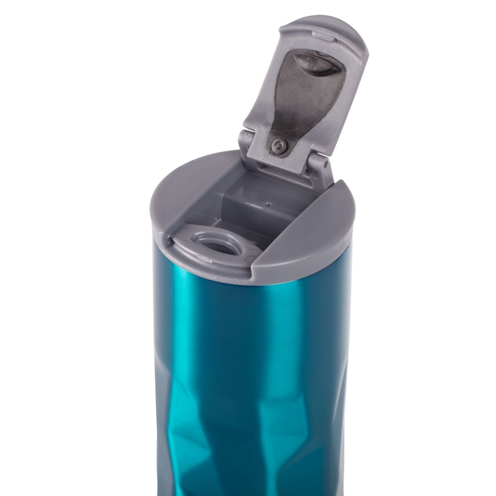 Двухслойная вакуумная конструкция из нержавеющей стали внутри и снаружи, герметичная завинчивающаяся крышка с откидным клапаном для питья.