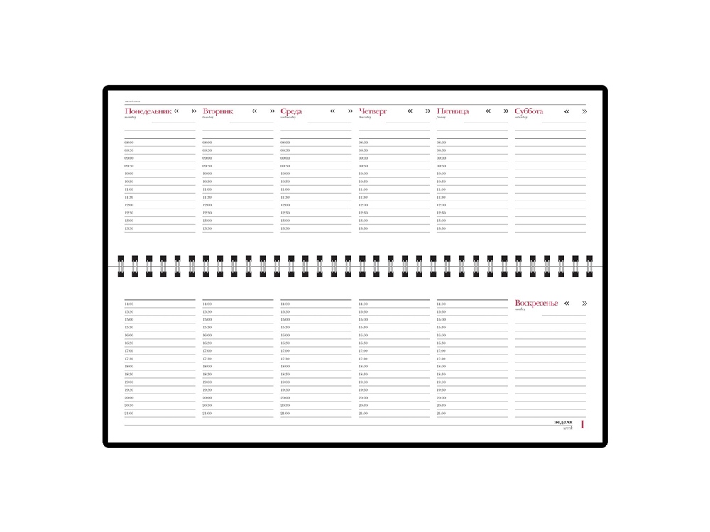 Недатированный планинг размером 305*130 мм состоит из 208 страниц с креплением на металлическом гребне. Используется высококачественная белая бумага плотностью 70 г/км. Полезная справочная информация на 15 страницах пригодится в бизнесе и повседневной жизни (телефонные коды России и мира, праздники, единицы измерения, таблицы размеров, часовых поясов и т.д.)