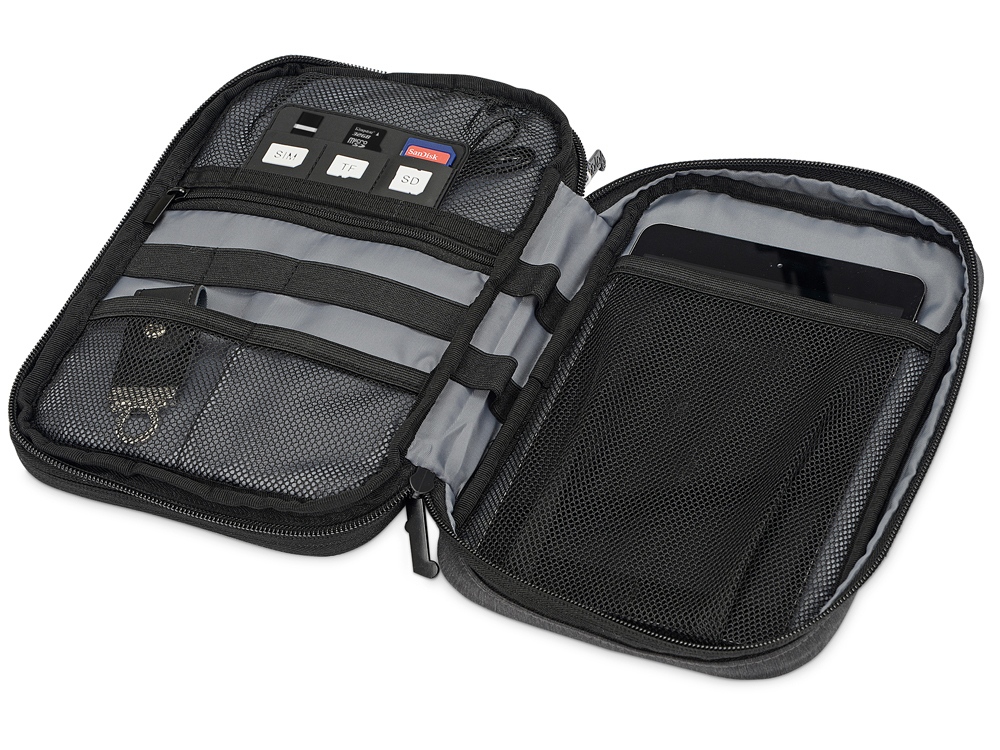 Органайзер District, Voyager обеспечивает упорядоченное хранение гаджетов, адаптеров, наушников и прочих электронных аксессуаров. Имеет стильный лаконичный дизайн и изготовлен из полиэстера – прочного, не склонного к истиранию и деформированию материала. Модель значительно упрощает пользование электронными аксессуарами в повседневной жизни, отлично подойдет для работы, дома и путешествий.