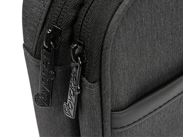 • Два больших отделения с множеством отсеков обеспечивают эргономичное хранение портативных электронных устройств и шнуров.