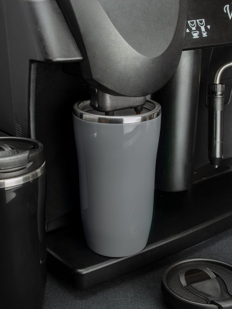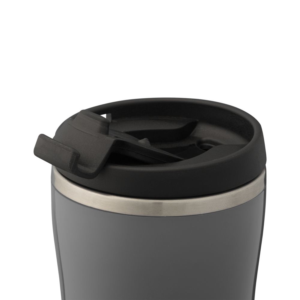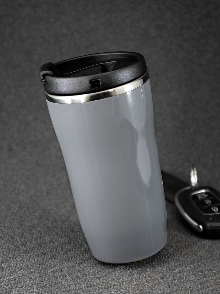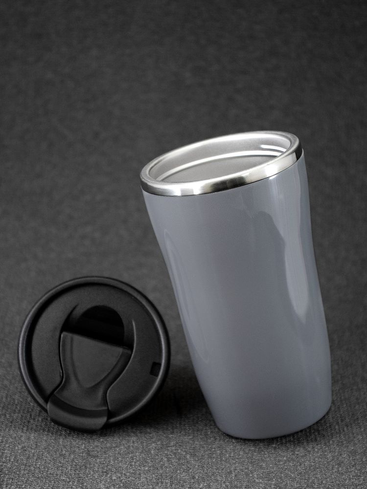 Двухслойная конструкция из пластика снаружи и пищевой нержавеющей стали внутри. Герметичная завинчивающаяся крышка с откидным клапаном для питья. В отверстие в крышке можно вставить шнурок для удобного ношения стакана на руке. Шнурок в комплект не входит.