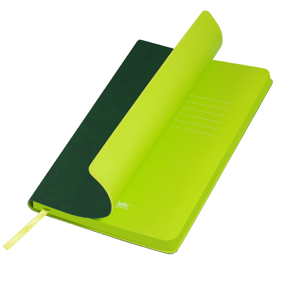 Ежедневник Latte New примечателен своим минималистичным, но завершенным и ярким дизайном. Выдающийся внешний вид аксессуара обусловлен удачным сочетанием оттенков зеленого. Гибкая обложка с закругленными уголками выполнена из приятного на ощупь, слегка прорезиненного материала. Она не образует заломов, не расслаивается и устойчива к повреждениям. Покрытие обложки имеет едва заметный блеск и мелкозернистый рисунок, имитирующий искусственную кожу. Яркий внешний вид создается контрастными элементами: насыщенный и свежий темно-зелёный, слегка припудренный цвет обложки сочетается с ярким лимонным цветом форзаца и среза. Форзац, нахзац и срез матовые. Кремовые скругленные страницы выполнены из шелковистого офсета. Они гармонично оттеняют свежесть основных цветов, уравновешивая цветовую композицию. Гладкое атласное лимонное ляссе с легким отливом выполнено в тон форзаца.