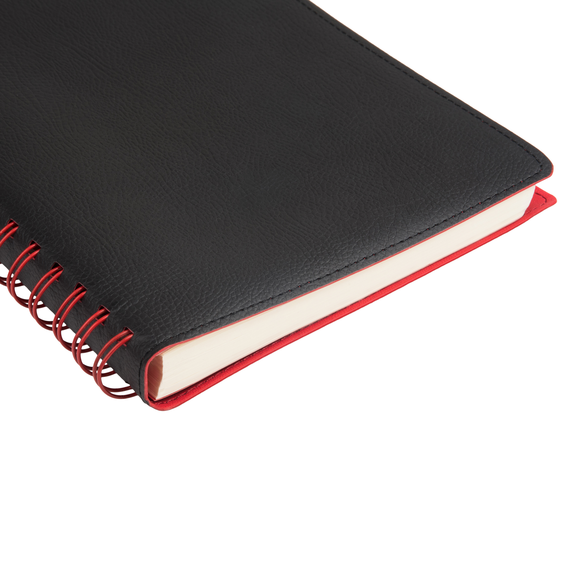 Цвет – черный, насыщенный, динамичный, однородный. Внутренний материал обложки – Latte – бархатистый, мелкозернистый, ярко-красного цвета.