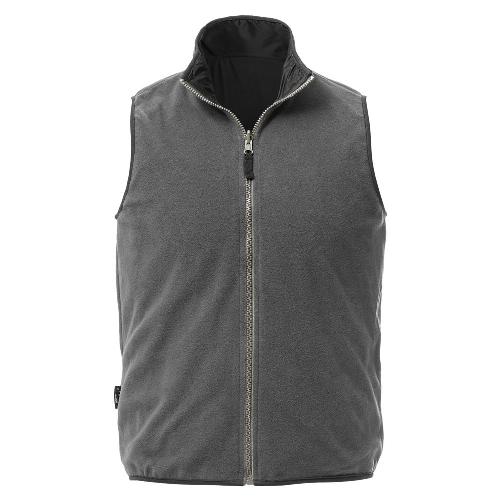 Сверху нейлон с водостойкой пропиткой, внутри - флис. А можно и наоборот. Жилет ведь двусторонний.