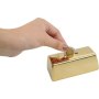 Копилка в форме слитка золота — превосходный корпоративный подарок по любому поводу. Вручайте ее с пожеланиями финансового благополучия и увеличения денежных запасов. Металлическая вещица станет отличным украшением интерьера и неиссякаемым источником хорошего настроения. Когда нужная сумма будет накоплена, разбивать копилку не придется. Чтобы вынуть деньги, достаточно снять металлический клапан, расположенный на дне.