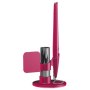 Держатель изделия выполнен в виде металлического стержня. Письменный аксессуар оснащен колпачком со специальной насадкой. Потерять или «унести с собой» такой сувенир невозможно. Для этого на нем предусмотрена специальная цепочка, соединяющая корпус аксессуара с зафиксированным на держателе колпачком.