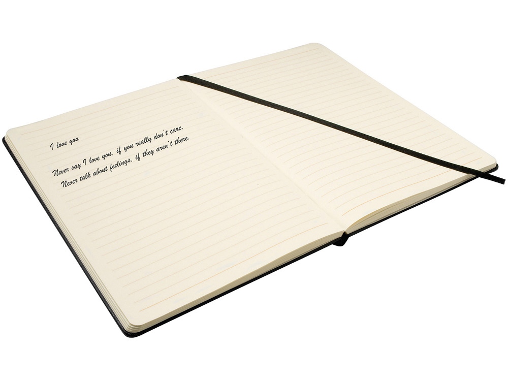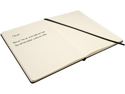 Формат А5, эластичная "застежка", твердая обложка, 80 листов линованной бумаги.