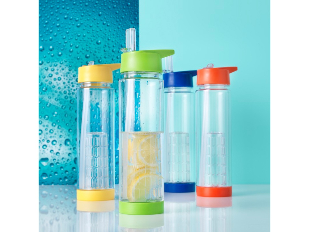 Бутылка с крышкой. Откручивающийся контейнер с ситечком для добавки вкуса в любимый напиток. Легко раскручивается для мытья и очистки. Придется по вкусу любителям натуральных продуктов и здорового образа жизни. Легко разбирается. Объем 740 мл.