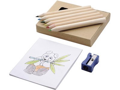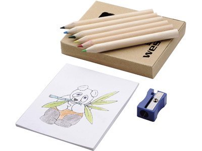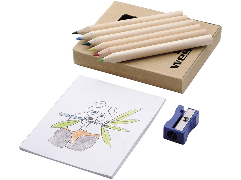 Набор для рисования 8 предметов. 6 цветных карандашей, точилка, раскраска.