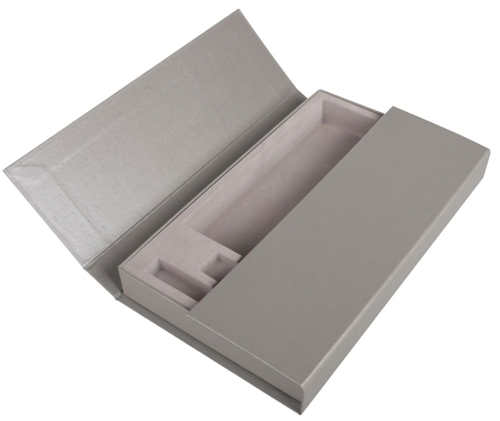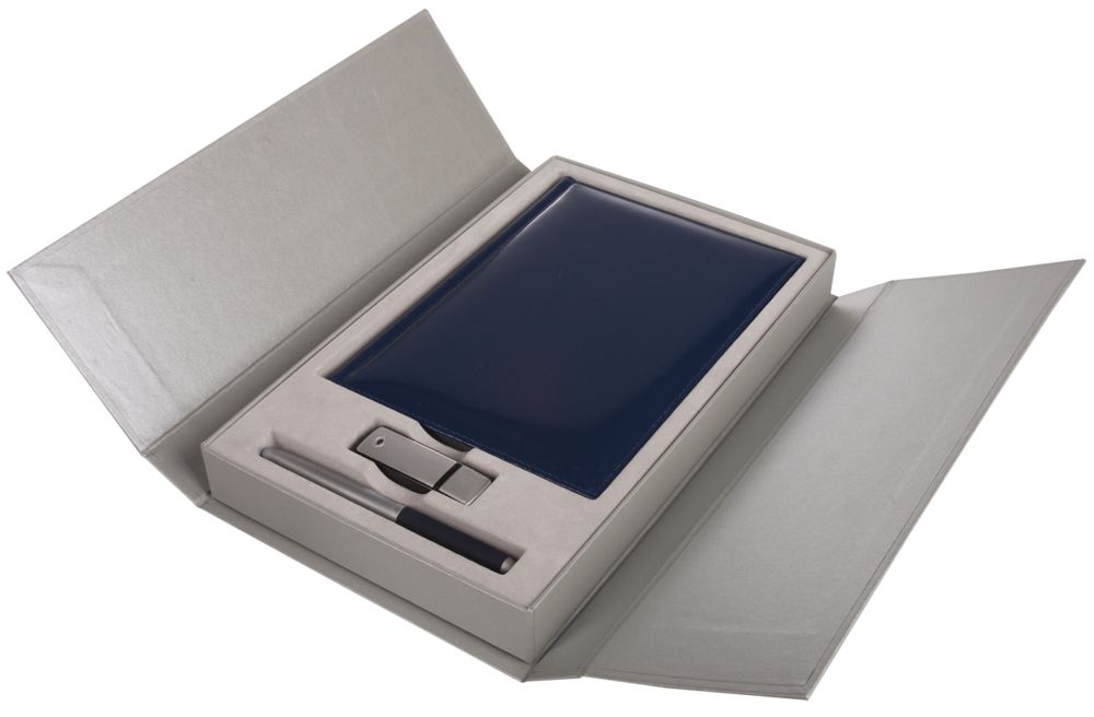 Подарочная коробка с двумя створками на магните и флокированным ложементом позволит вам скомплектовать набор, состоящий из ежедневника, флешки и ручки. Изделие придаст вашему подарку законченный вид, а также предохранит его от нежелательных повреждений во время транспортировки. Коробка подходит под нанесение фирменной символики.